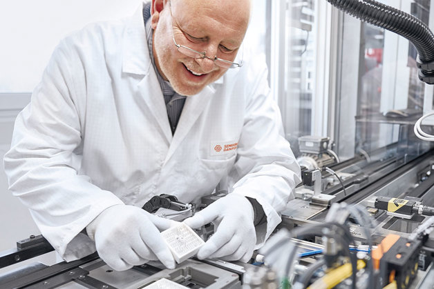 To ensure you receive components of only the highest level of quality, our entire manufacturing process up to the electronic and testing processes takes place under clean room conditions. Our state-of-the-art production equipment automatically packages modules directly from the semiconductor on wafer to the final electric test.