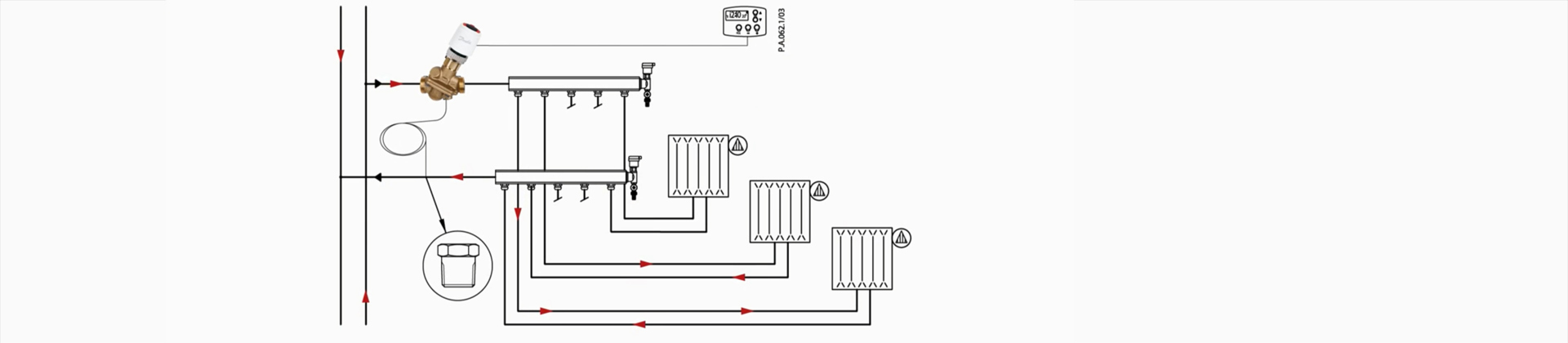 - Residential buildings (Multi Family Housing) with two-pipe heating systems with distribution systems in front of each flat, such as manifolds for hydronic floor heating
