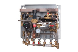 Each building and apartment has a directly connected substation or flat station with integrated production of domestic hot water. Single or multiple heating circuits (e.g. radiator, floor heating system) are supplied with heated water from the central heat source.
