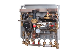 Substations for direct heating have no heat exchanger separating the primary flow from the secondary flow. Therefore the supply from the network or the central oil-/gas boiler will flow directly into the network in each flat. Direct substations are recommended for maximum PN10 or PN6 networks.