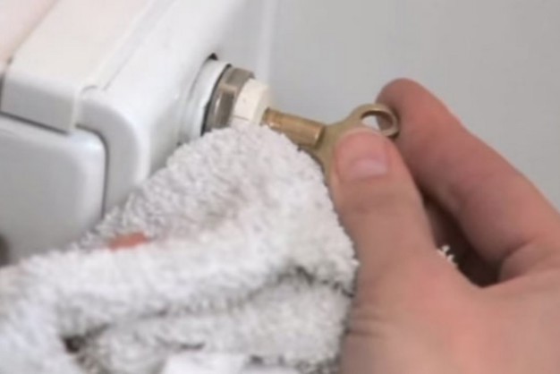 If your radiator isn’t working properly, turn down the heat and carefully loosen the bleed screw – at the top of the radiator – either by hand or with a pair of pipe wrench pliers. Have a cloth ready for potential leaks. You should hear hissing sound, indicating air being forced out by water. When the water begins to squirt out, retighten the screw. (Note: If no water comes out you may have to refill the expansion tank.)