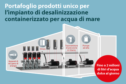 Soluzioni Danfoss per impianti di desalinizzazione containerizzati (SWRO) in situazioni di emergenza idrica.