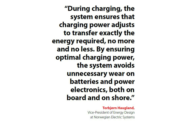 NES and Danfoss have the answers to all these engineering challenges. Håvard Wolden from Danfoss explains: “The electric ferry charges 350 kWh of power in just 6 minutes. This scale of charging places stringent demands upon the smart grid onshore in Hareid and Sulesund, which supports reliable power supply for the electric vessel rapid charging system.