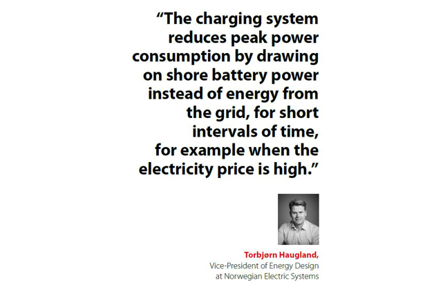 By actively controlling, monitoring, and supporting the grid from local batteries on shore side, the system supplies the high peak power crucial to rapid charging, with no need to scale up grid infrastructure. Instead of extra capital investment, the system relies on peak shaving functionality.
