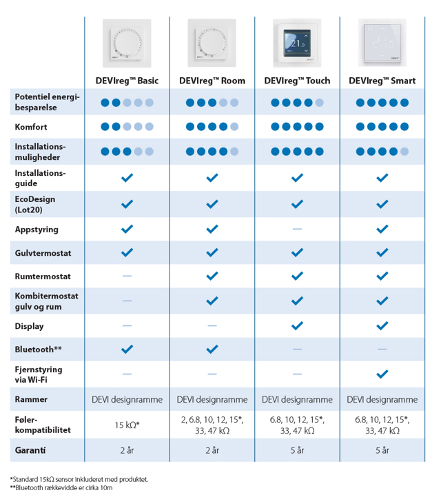 Uanset om du er på udkig efter komfortvarme eller totalopvarmning, kan DEVIreg™ Basic og DEVIreg™ Room hjælpe dig. Begge termostater kan nemt monteres i alle typer rum i alle boliger.