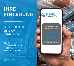 Wir sind als Aussteller auf der Pumps & Valves Messe Zürich vom 26.–27. November 2025 mit dabei!