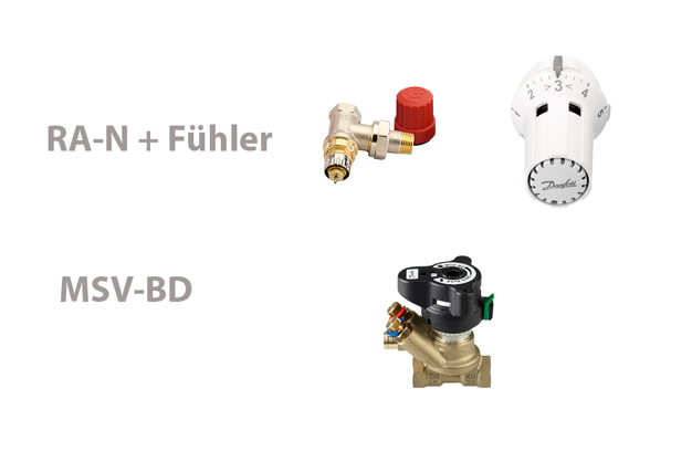 Keine Berechnung oder Voreinstellung notwendig (Einsatz von eTRVs mit entsprechender Zertifizierung in 1-2 Familienhäusern mit max. 20 Heizkreisen)