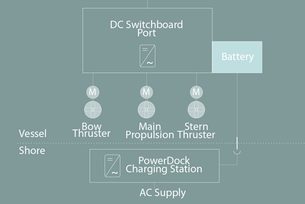 The main propulsion, bow thrusters and stern thrusters are equipped with VACON® drives to control speed and optimize power consumption and maneuverability. These drives also ensure safe and high efficiency power conversion from the battery pack.