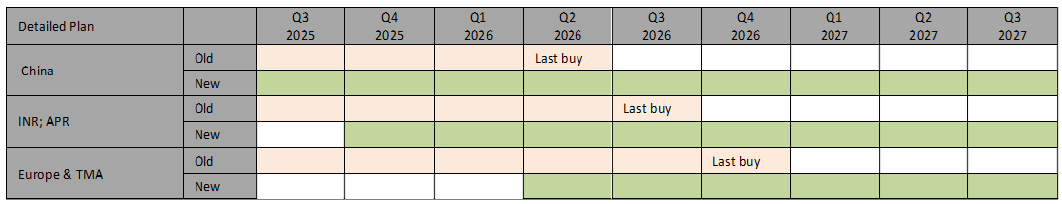 - Asia, India: 1st of November 2025, with standard lead time of 4 to 6 weeks for the high runner codes