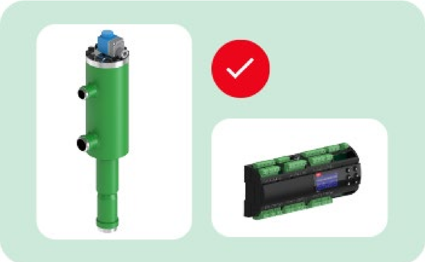 - The combination of large CO₂ ejector and EKE 80 ejector controller ensures easy setup and commissioning, and optimizes ejector operation to achieve maximum system performance
