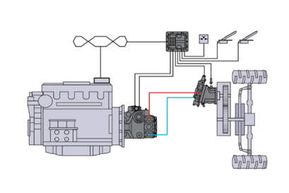 The directional control valve is eliminated, and the shift valve integrated into the Danfoss Reverse Displacement Motor (RDM). This reduces system design variables and creates new possibilities for engineers.