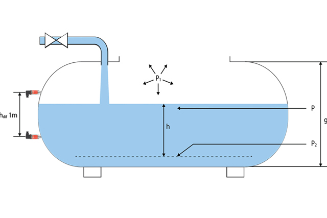 If we have in a closed container (no ventilation) with a medium that evaporates, such as gasoline, we will get an overpressure above the liquid. This overpressure will sit in the top of the tank and can be changed without influencing the medium level. This overpressure must be measured by another pressure sensor, as the gas trapped above the liquid causes a higher hydrostatic pressure, which must be compensated for to avoid false values on the level measurement.