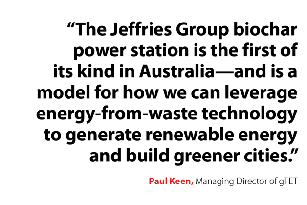 “The Jeffries Group biochar power station is the first of its kind in Australia — and is a model for how we can leverage energy-from-waste technology to generate renewable energy and build greener cities,” concluded Keen.