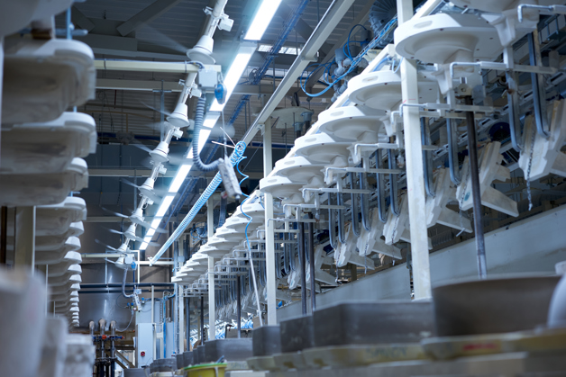 POLAND: By investing in Danfoss VLT® drives, the Roca Group sanitary ware factory in Gliwice now consumes about 30% less energy, annually.