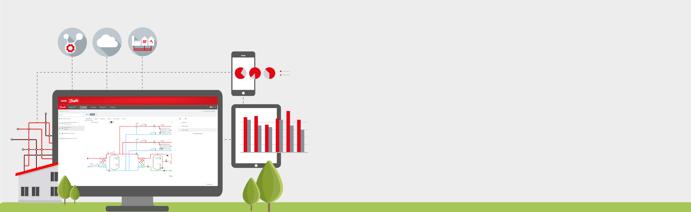 De la phase de planification à la surveillance et au contrôle en temps réel, les solutions et services Danfoss Leanheat® ouvrent le chemin vers l'optimisation à chaque niveau de votre entreprise avec des résultats puissants :