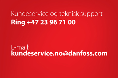 Bruk kundeservice.no@danfoss.com så hjelper vi deg med tilbud, priser, leveringstid, bestillinger og tekniske spørsmål.