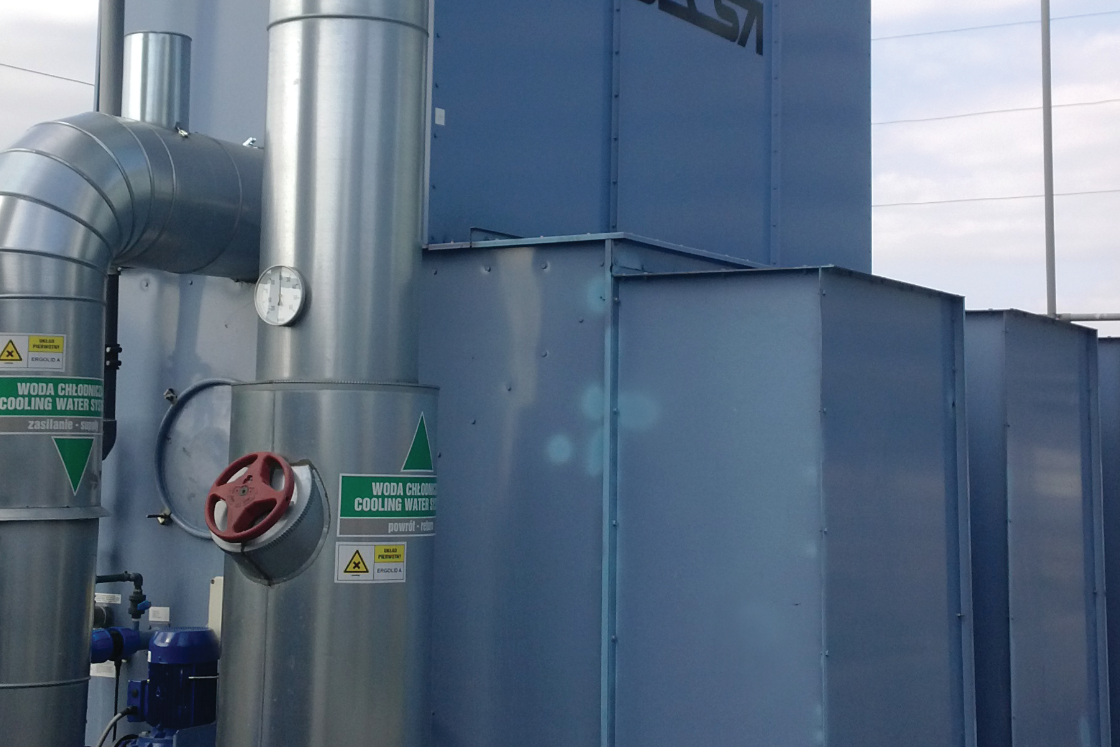 Proces chłodzenia suchego odbywa się w urządzeniach zwanych chłodniami wentylatorowymi suchymi, w których medium (woda lub roztwór glikolu) przepływa przez szereg rur.