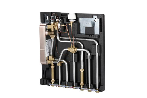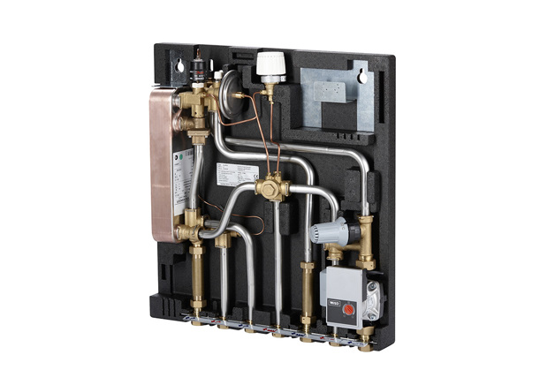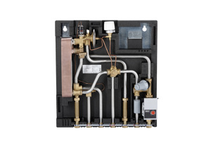 - Indirect - un schimbător de căldură cu plăci este controlat de un robinet termostatic cu 2 căi și opțional de o vană de control zonal, controlată de un termostat de cameră programabil. Acest principiu este aplicabil în principal pentru încălzirea prin pardoseală și sistemele cu PN16 maxim.